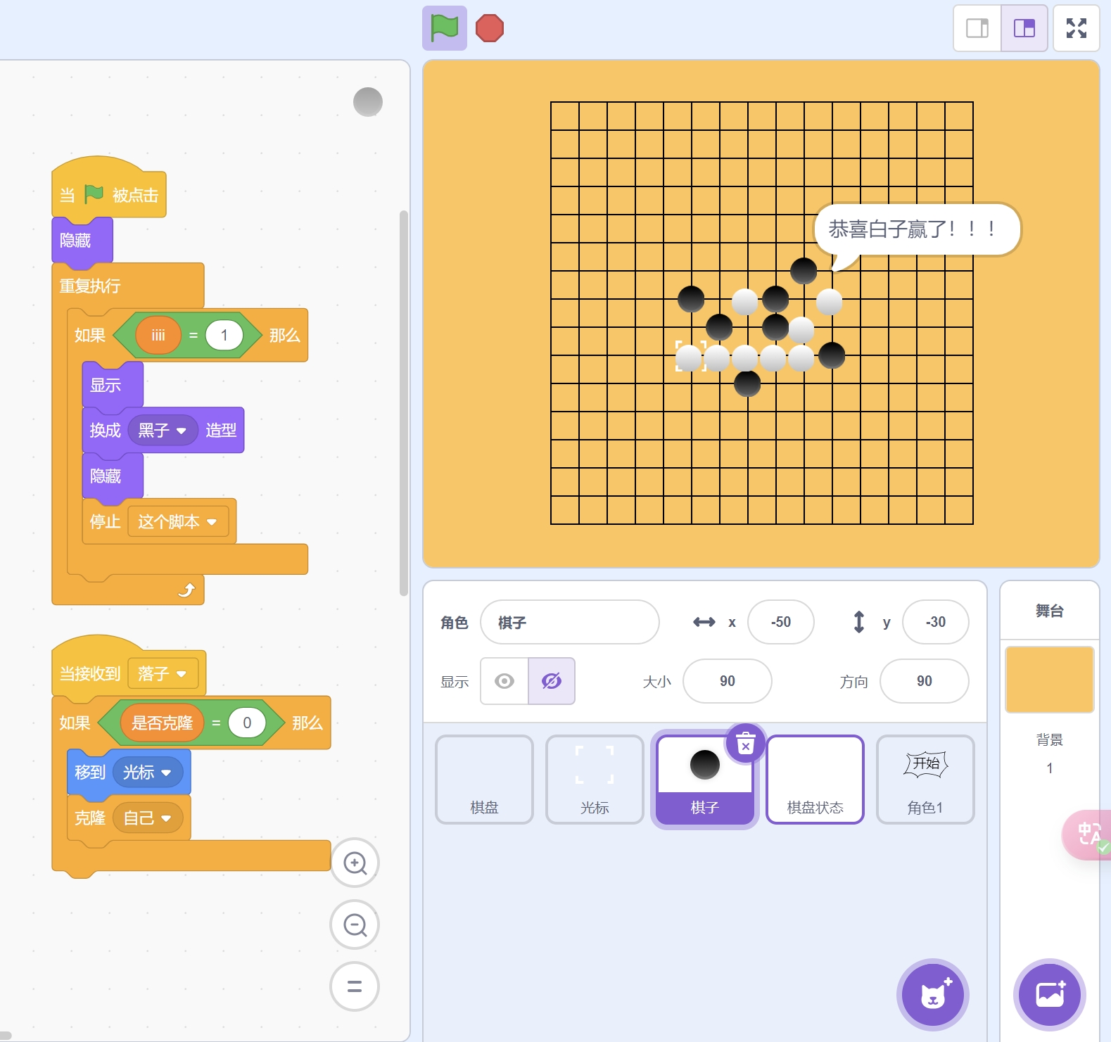 作者zhiyuan_liu 五个棋子连接在一起可以获胜 《五子棋》是一款融合经典与创新的Scratch益智游戏。它不仅保留了传统五子棋的精髓,还通过Scratch平台赋予了全新的生命力。游戏界面简洁友好,支持与好友对战模式,让你随时随地享受策略与智慧的碰撞。无论你是五子棋爱好者,还是Scratch编程初学者,都能在这款游戏中找到乐趣与成长。 预览 版权说明:资源均源于互联网收集整理,不保证资源的可用及完整性,仅供个人学习研究,请勿商用。喜欢记得支持正版,若侵犯第三方权益,请及时联系站长删除!