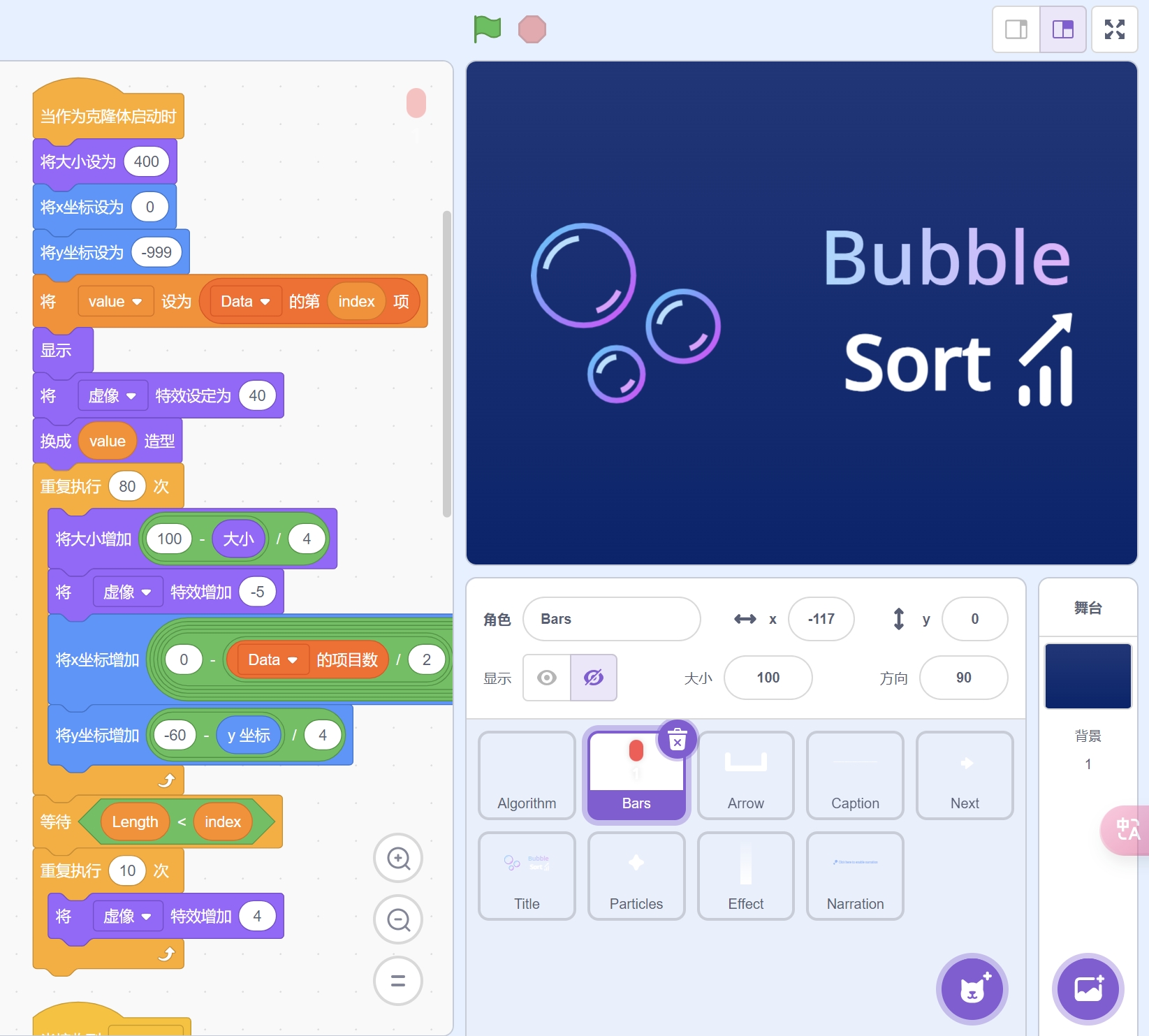 详情请参阅预置冒泡排序算法。不过,我鼓励你在观看之后尝试自己编写一个!