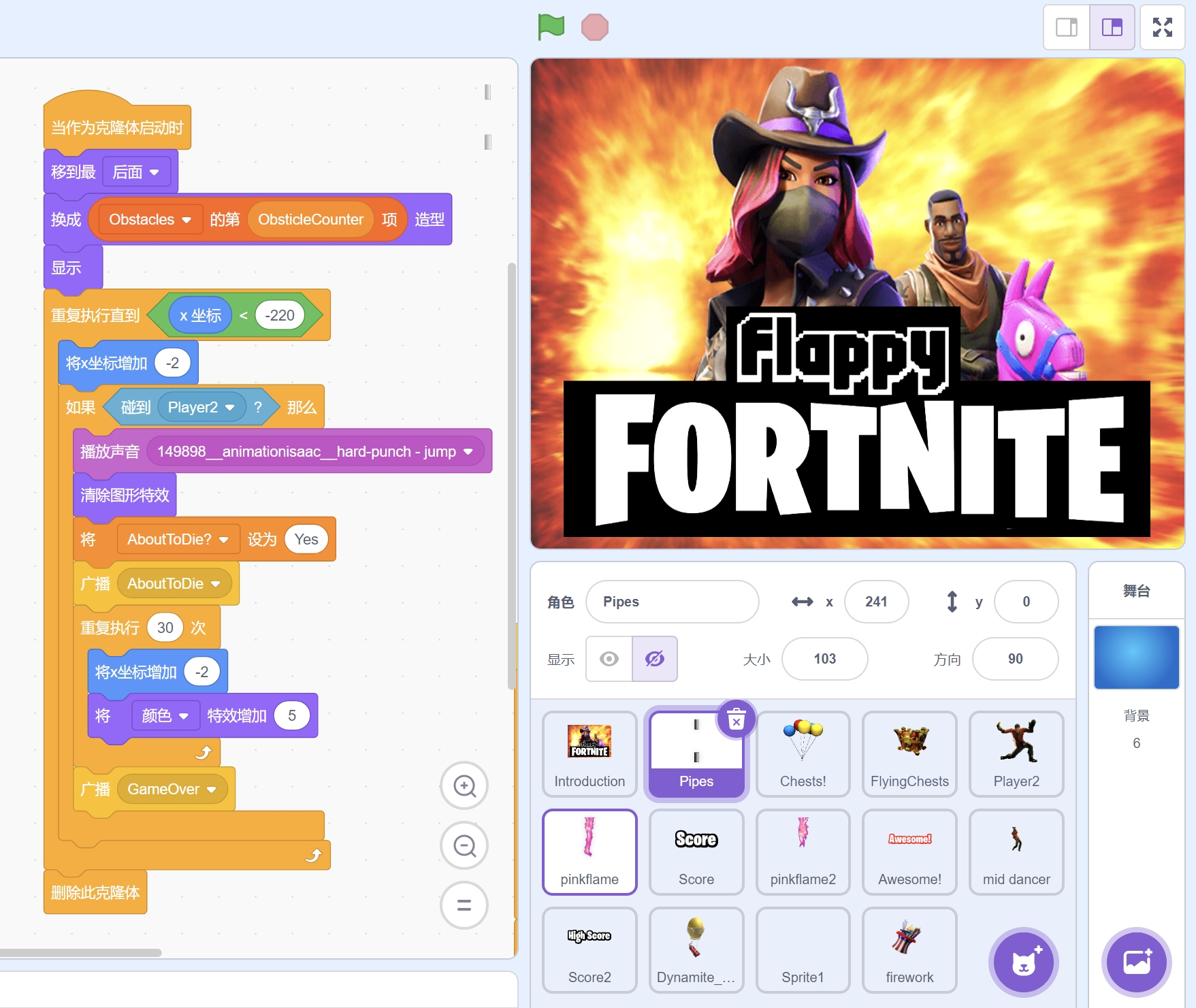 《Flappy Bird》+《堡垒之夜》这两款游戏元素结合在一起。