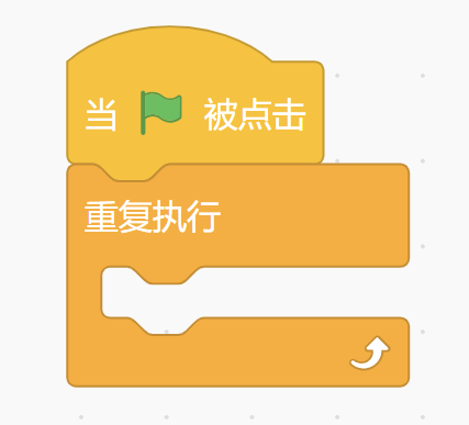 在 “当绿旗被点击” 的下面,添加以下代码块:
