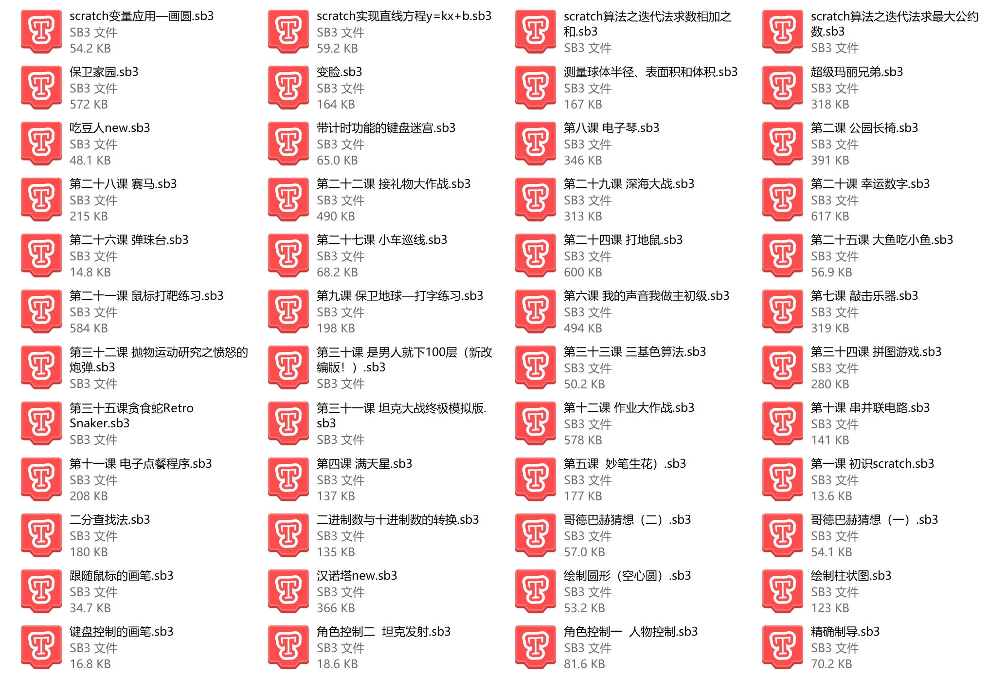 说明 Scratch作品数量:2000+ 大小:5GB 下载方式:百度网盘 游客购买后无需登录即可直接下载 预览 由于资源太多,只截取了部分内容截图~ 版权说明:资源均源于互联网收集整理,不保证资源的可用及完整性,仅供个人学习研究,请勿商用。喜欢记得支持正版,若侵犯第三方权益,请及时联系站长删除!
