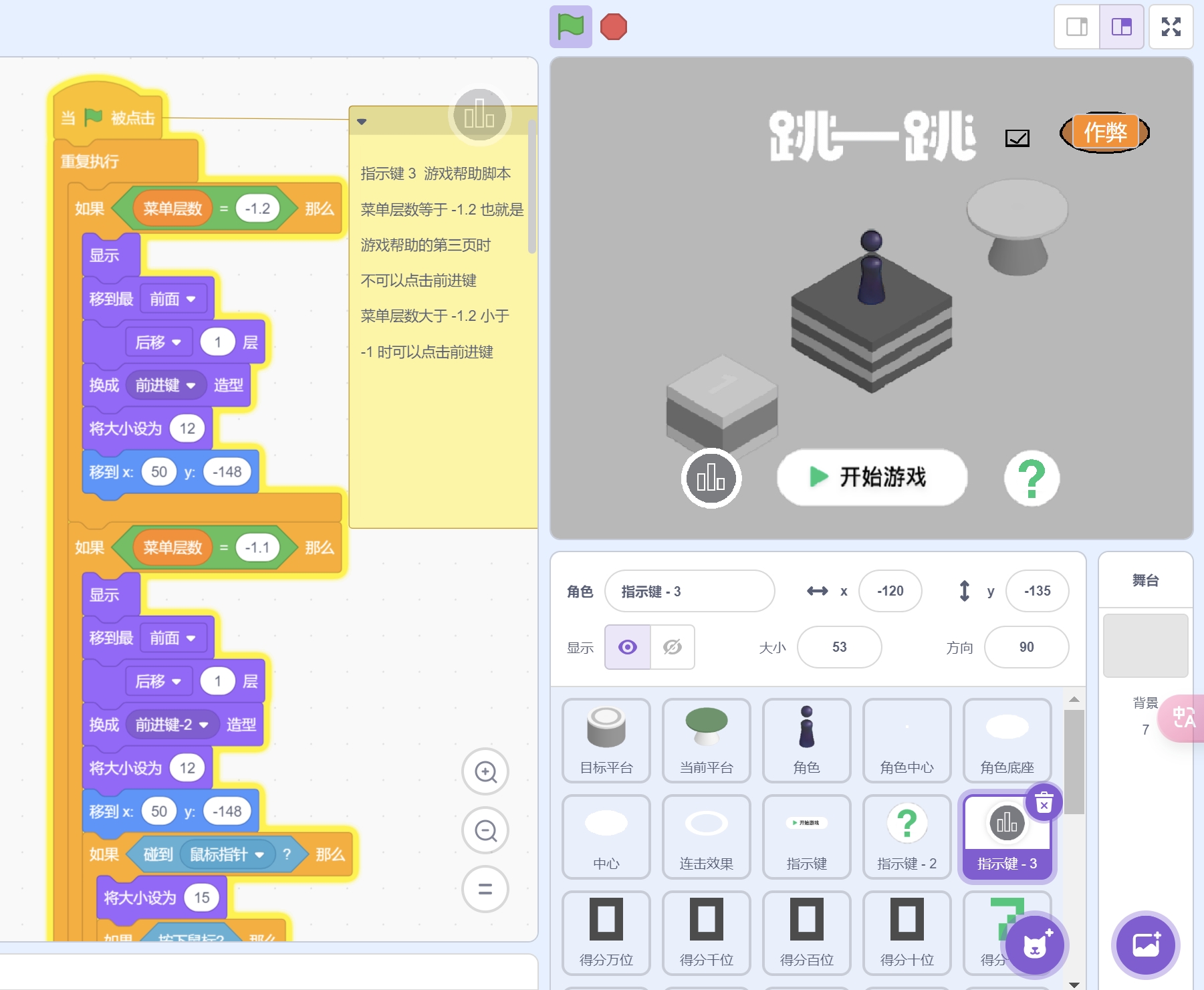点击 “开始游戏” 按键,按下鼠标键使小人开始蓄力,松开鼠标键小人开始跳跃。尽量让小人成功地跳到更多的平台上以获得更高的分数。