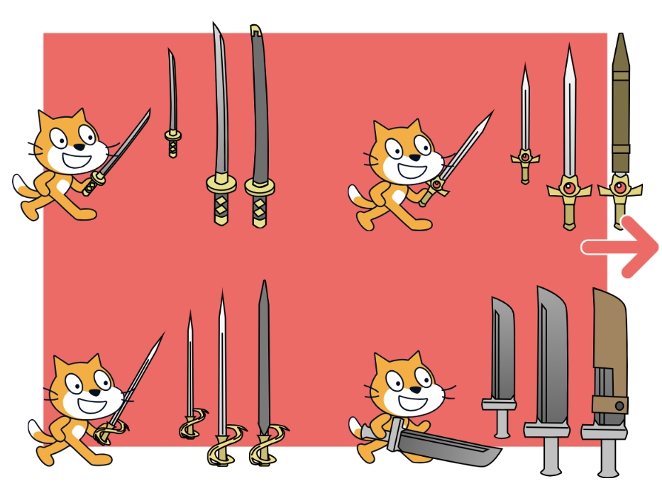 武器素材包-冷兵器 是一款专为游戏开发者和动画创作者设计的素材包,包含多种精美的冷兵器图像,如剑、斧、矛、锤子、刀等。每个素材都经过精心绘制,保证高质量和细致的细节,适用于各种风格的项目。您可以轻松将这些素材应用于您的Scratch项目、游戏或动画中,提升作品的视觉效果。