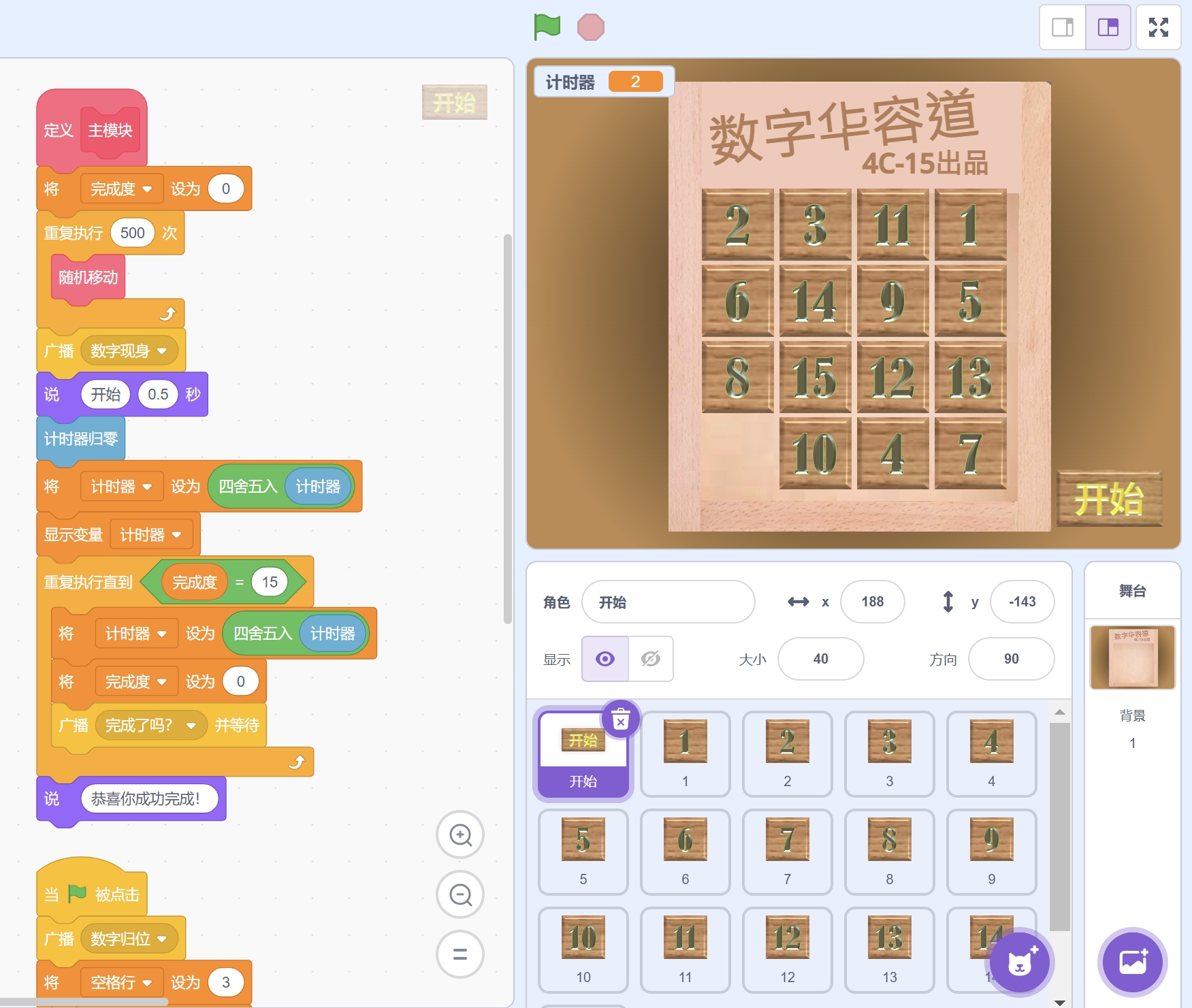 《数字华容道》是一款经典的益智游戏,通过将数字方块逐步移动至空格位置,最终完成排序。游戏提供了“开始”按钮来生成新的局面并开始计时,当你完成排列后,计时器会自动停止。每局游戏都是可以解开的,测试你的逻辑思维和解谜能力!