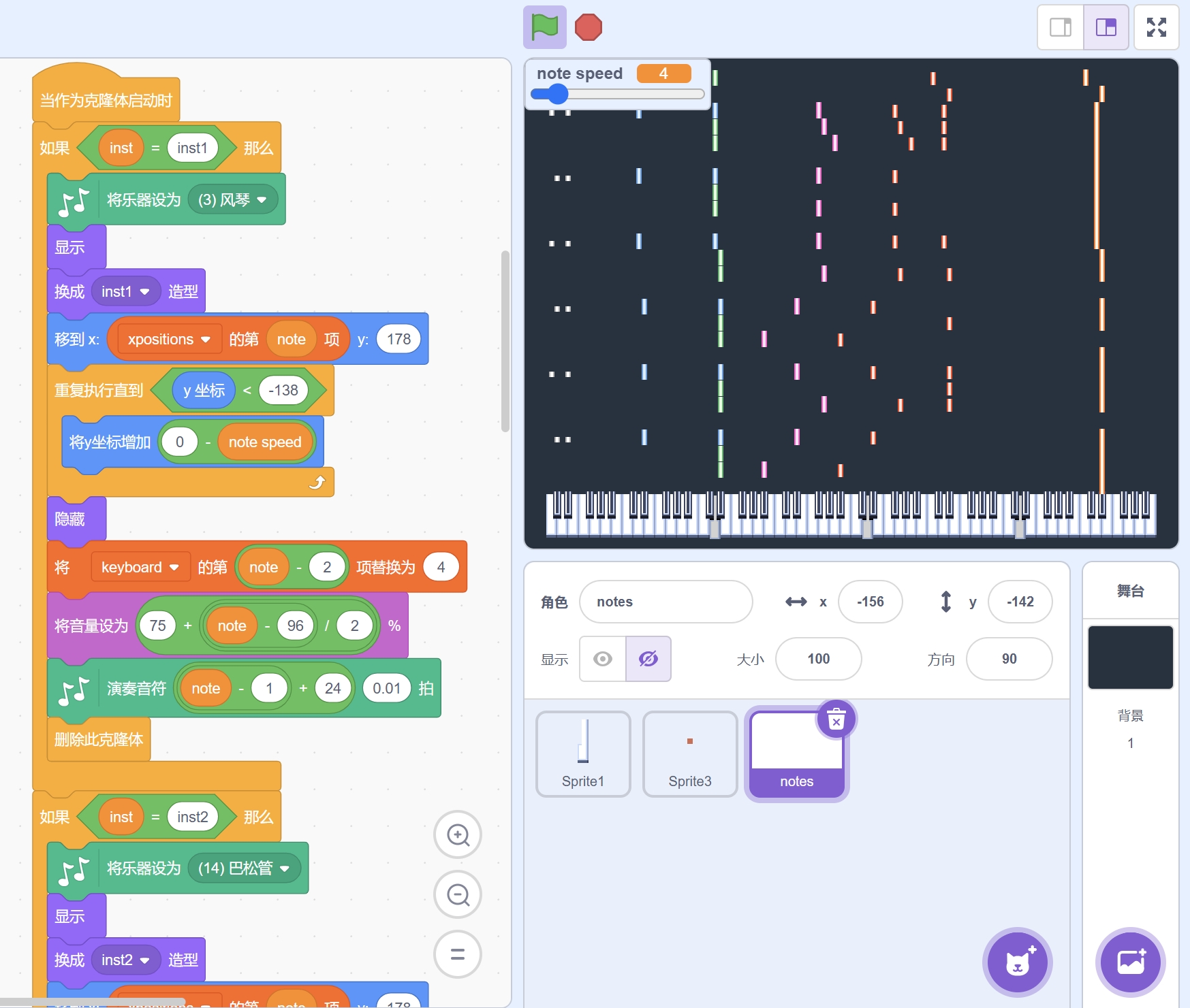 《钢琴可视化 Redux (Piano Visualizer Redux)》是一款音乐可视化项目,重制自原Scratch项目,以适应3.0版本。本次重制不仅修复了原有项目的问题,还新增了四种乐器,并完整编写了Danny Baranowsky的《Six Feet Thunder》一曲,带来约三分钟的视觉和听觉享受。请享受在屏幕上看到音符跃动的独特体验!