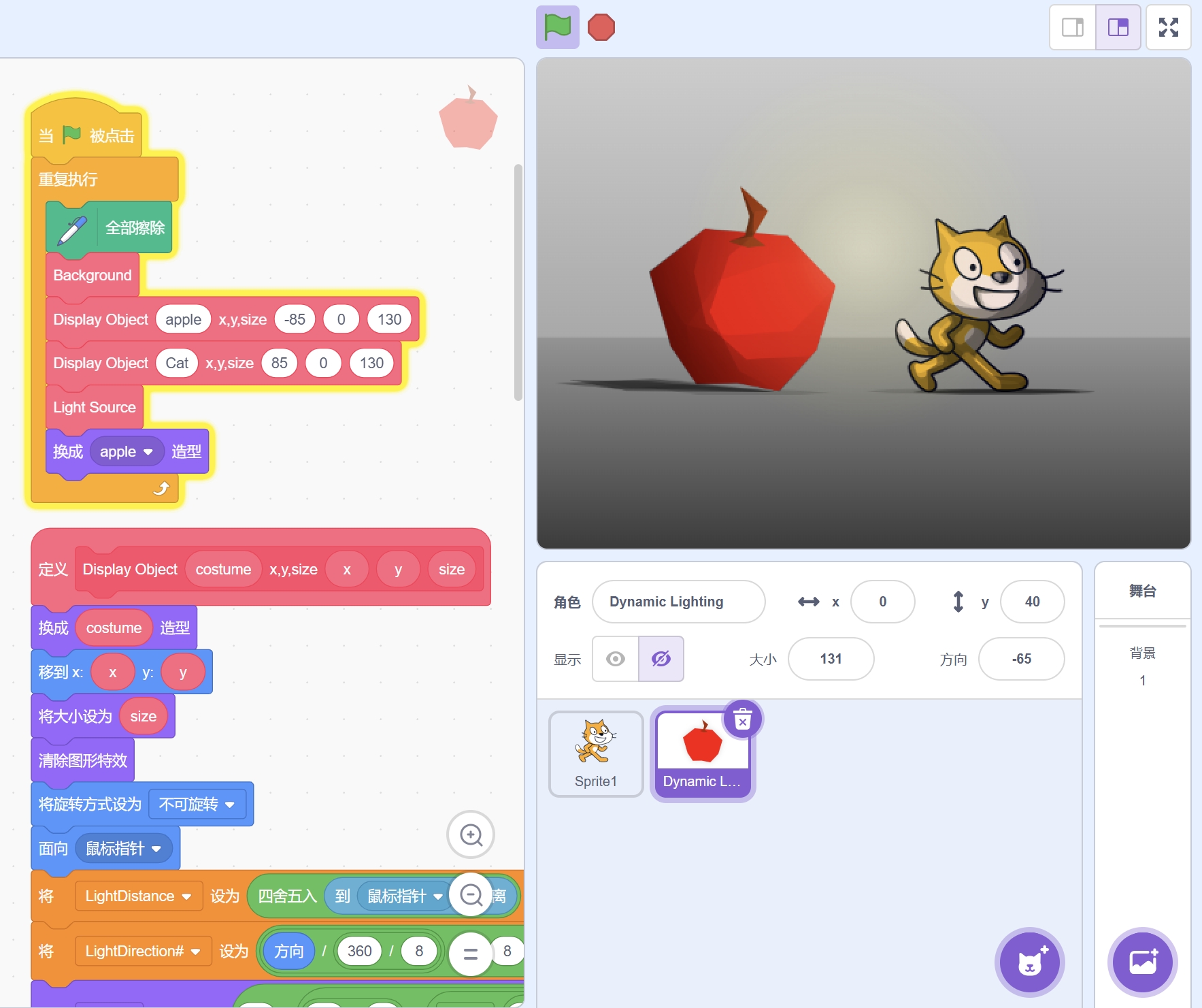 《动态光影引擎》是一款视觉效果出色的光影模拟引擎,采用8个阴影造型,分为4层堆叠,以实现动态光影效果。虽然绘制阴影造型需要一定技巧,但最终呈现的效果相当不错,非常适合未来的Scratch项目。快来试着重混该项目,并添加自己的物体,让你的项目拥有独特的光影效果吧!