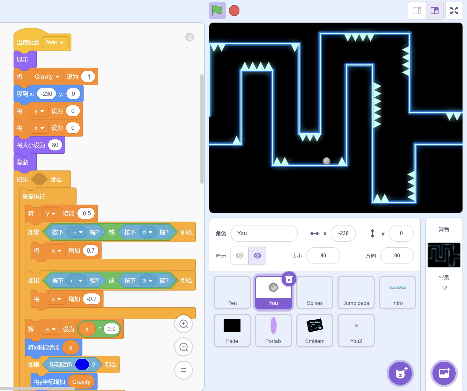 • 小心尖刺障碍,使用黄色线条和传送门完成关卡!