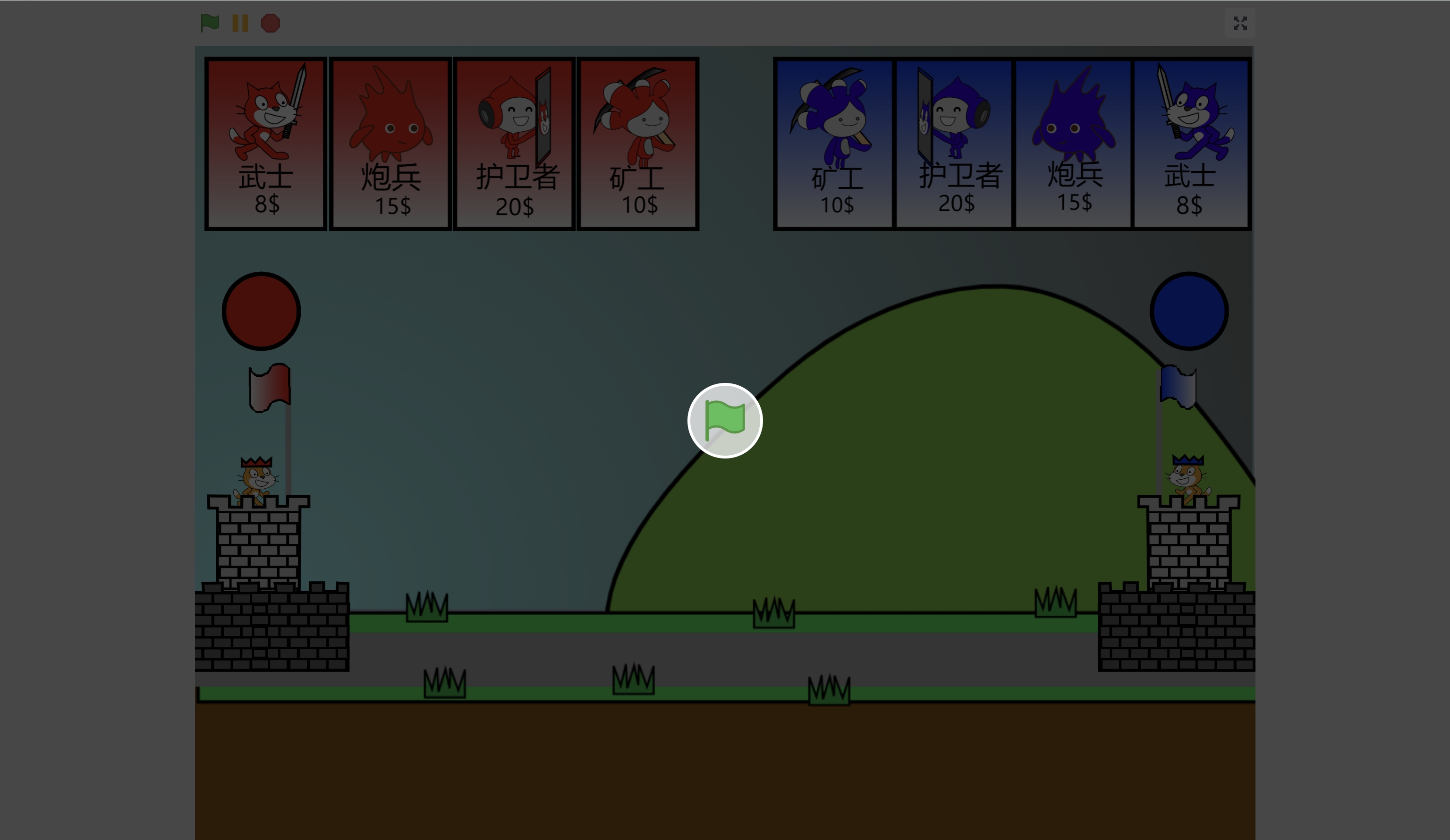 《Scratch大战》是一款支持单人或双人模式的策略对战游戏,玩法灵感来自经典的塔防策略游戏《喵喵大作战》。在游戏中,你需要召唤强力单位,运用必杀技,并合理管理资源,最终击败对方的城堡!