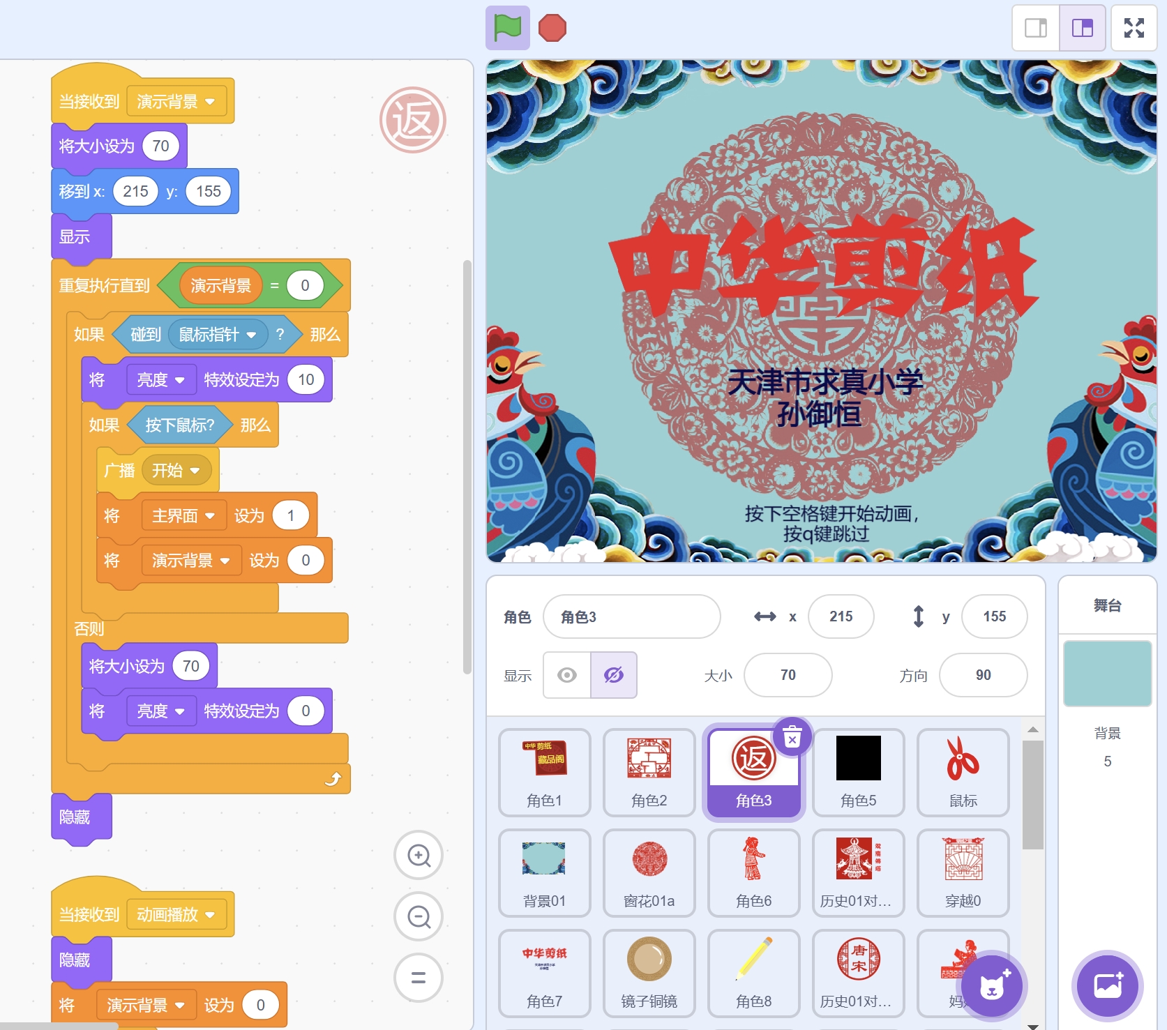 希望大家通过这个 Scratch 作品感受到中国剪纸文化的独特之美!