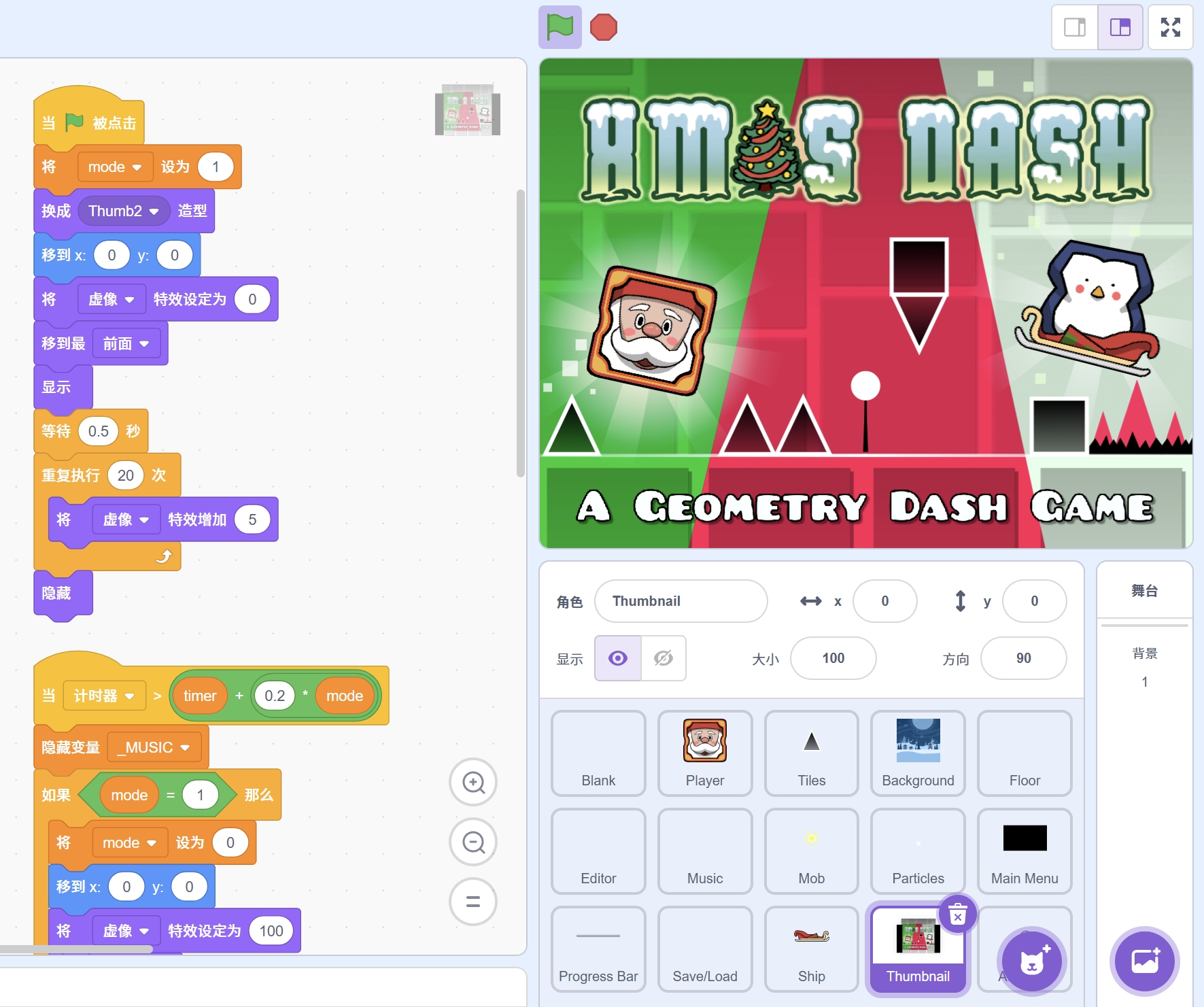 - 从真正的 Geometry Dash 转化为 Scratch 关卡,通过大量编码实现,带来独特的体验!