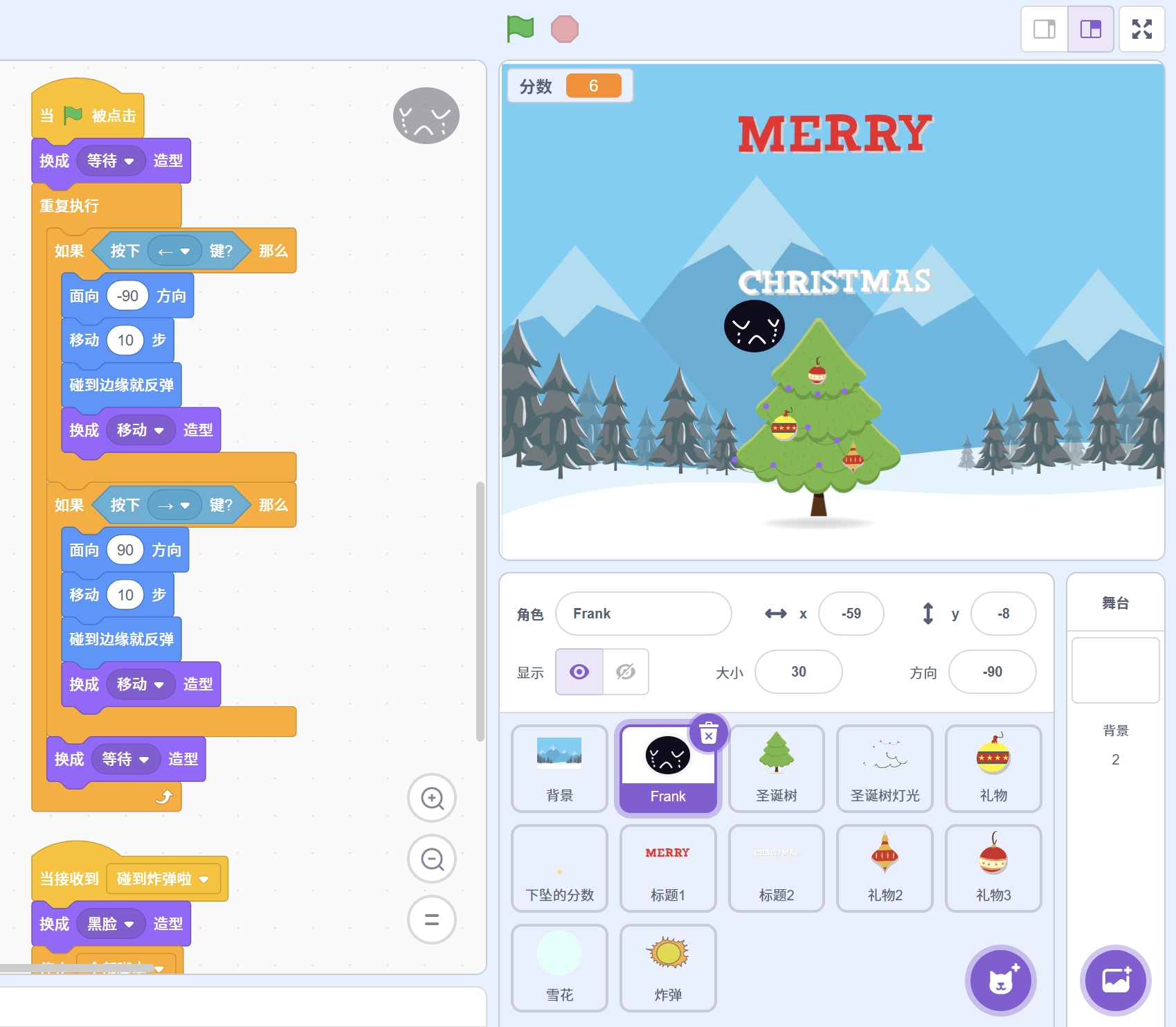 - 目标:尽可能多地收集礼物🎁,同时避免炸弹袭击!