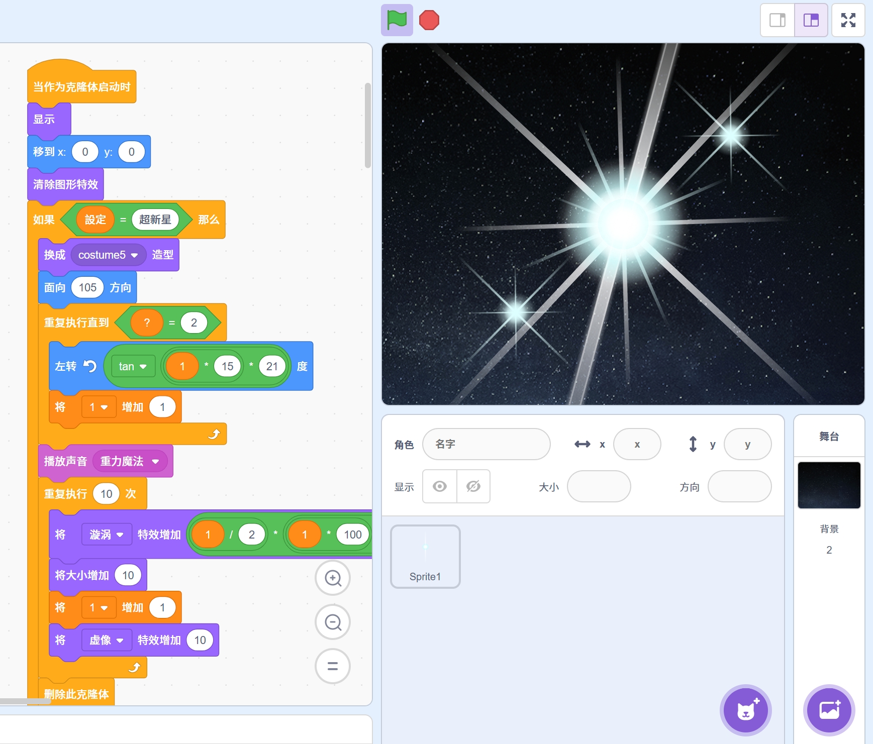 《超新星》是一部充满创意和视觉震撼的Scratch创意动画作品。在这部动画中,玩家将感受到一颗超新星的诞生与爆发。独特的画面风格和流畅的动画效果,带领观众进入一个神秘的宇宙世界,体验震撼的视觉盛宴。