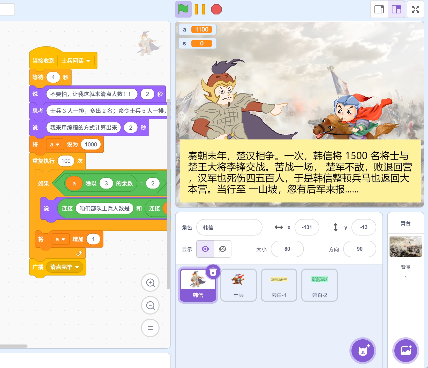 《排兵布阵》是一部教学动画作品,灵感来源于秦朝末年楚汉相争的历史故事。故事讲述了韩信如何凭借智慧和精准的排兵布阵,带领汉军在人数劣势的情况下,击败强大的楚军。这部动画通过简洁的画面和生动的讲解,带领观众重温历史中的经典战役。