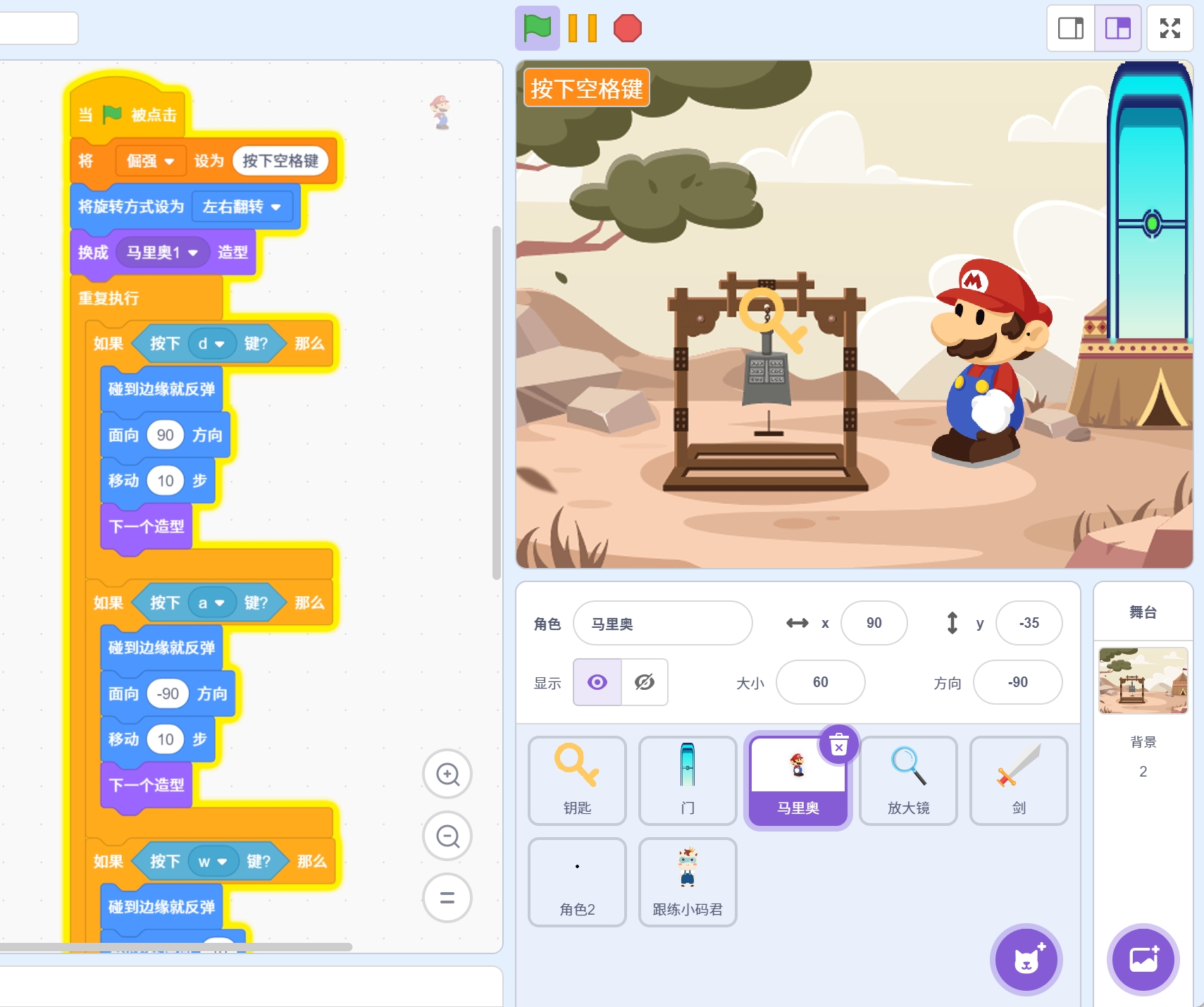 - 使用”W”,”A”,”S”,”D”移动马里奥