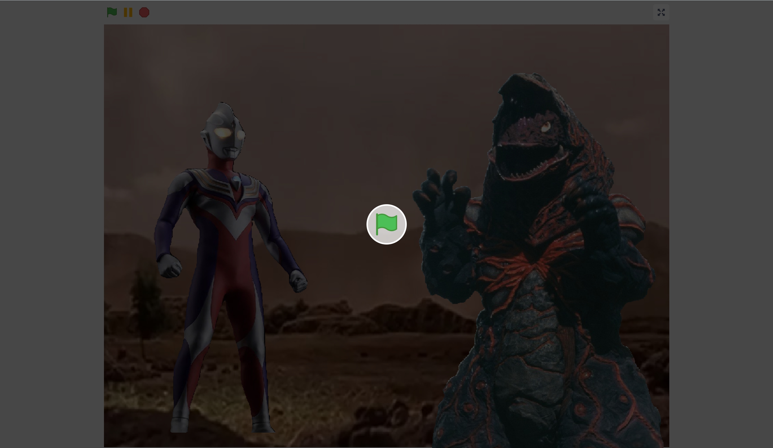 1️⃣ 点击绿旗,观看字幕讲解(配有迪迦奥特曼主题曲与背景)。