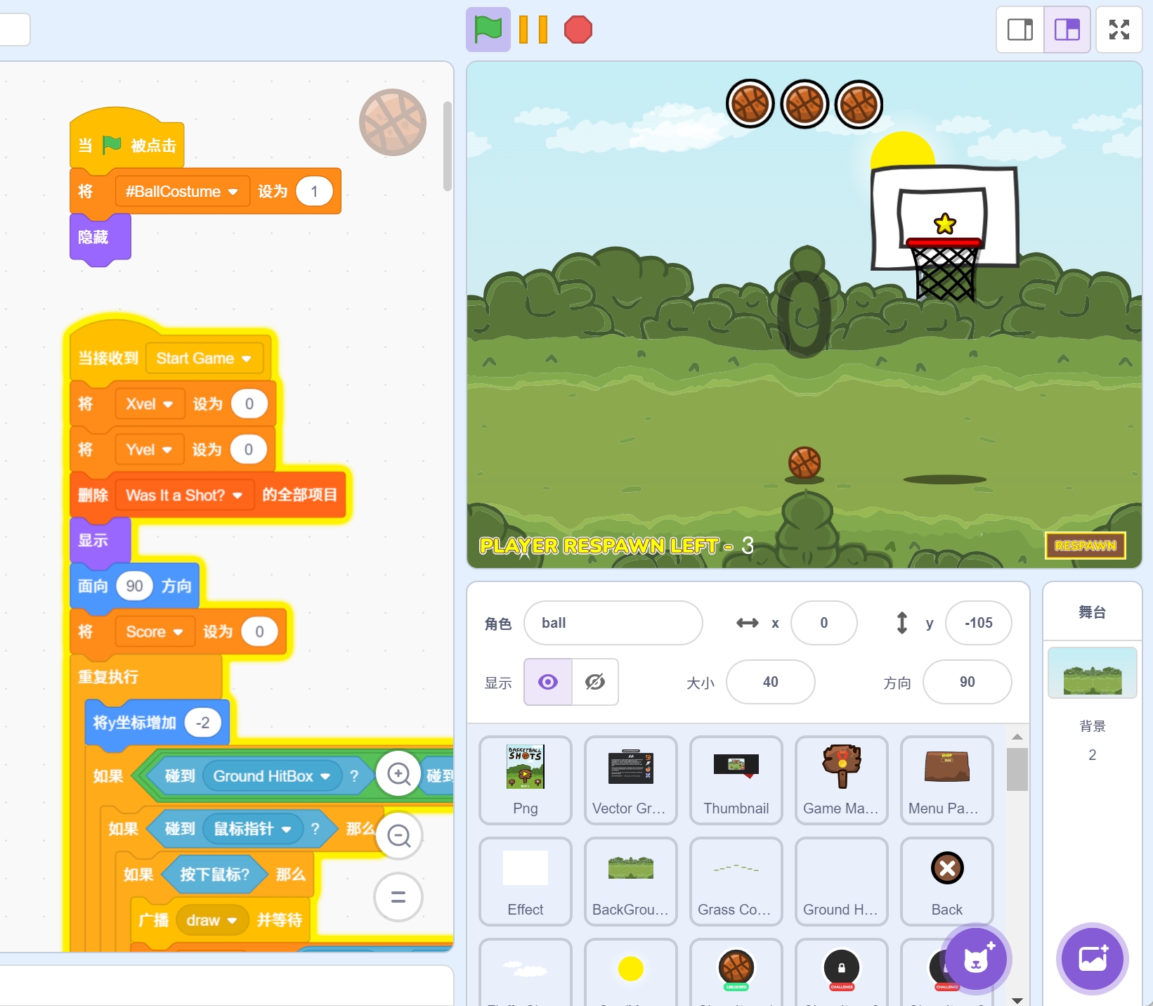 《篮球射手》是一款基于经典投篮游戏改编的Scratch作品,玩家需要通过精准的点击控制投篮力度和角度,挑战高分纪录!收集星星解锁酷炫篮球皮肤,体验真实的投篮乐趣!