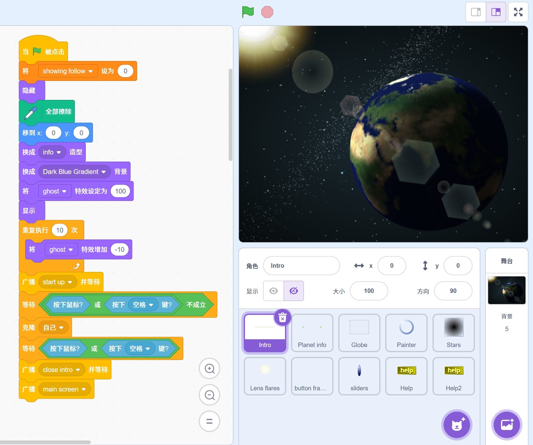 注意: Scratch 3设定了200000个列表项的上限,而本项目会往列表中存入大量数据(如像素颜色、星球数据等),因此很容易达到这个上限。(例如:进行几次修改后,撤销/重做功能就可能失效…)