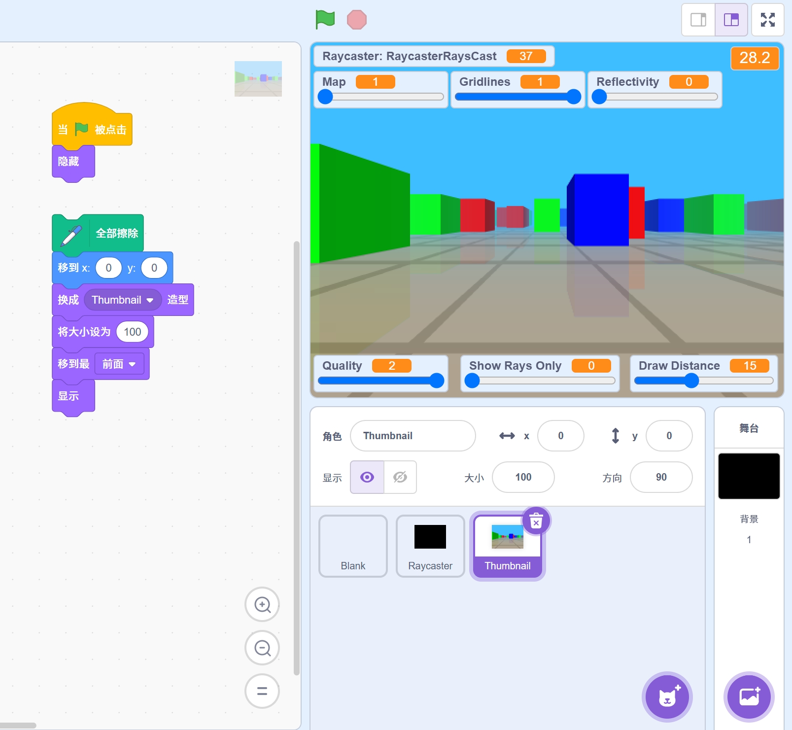 一款基于Scratch 3的高性能光线投射模拟引擎!