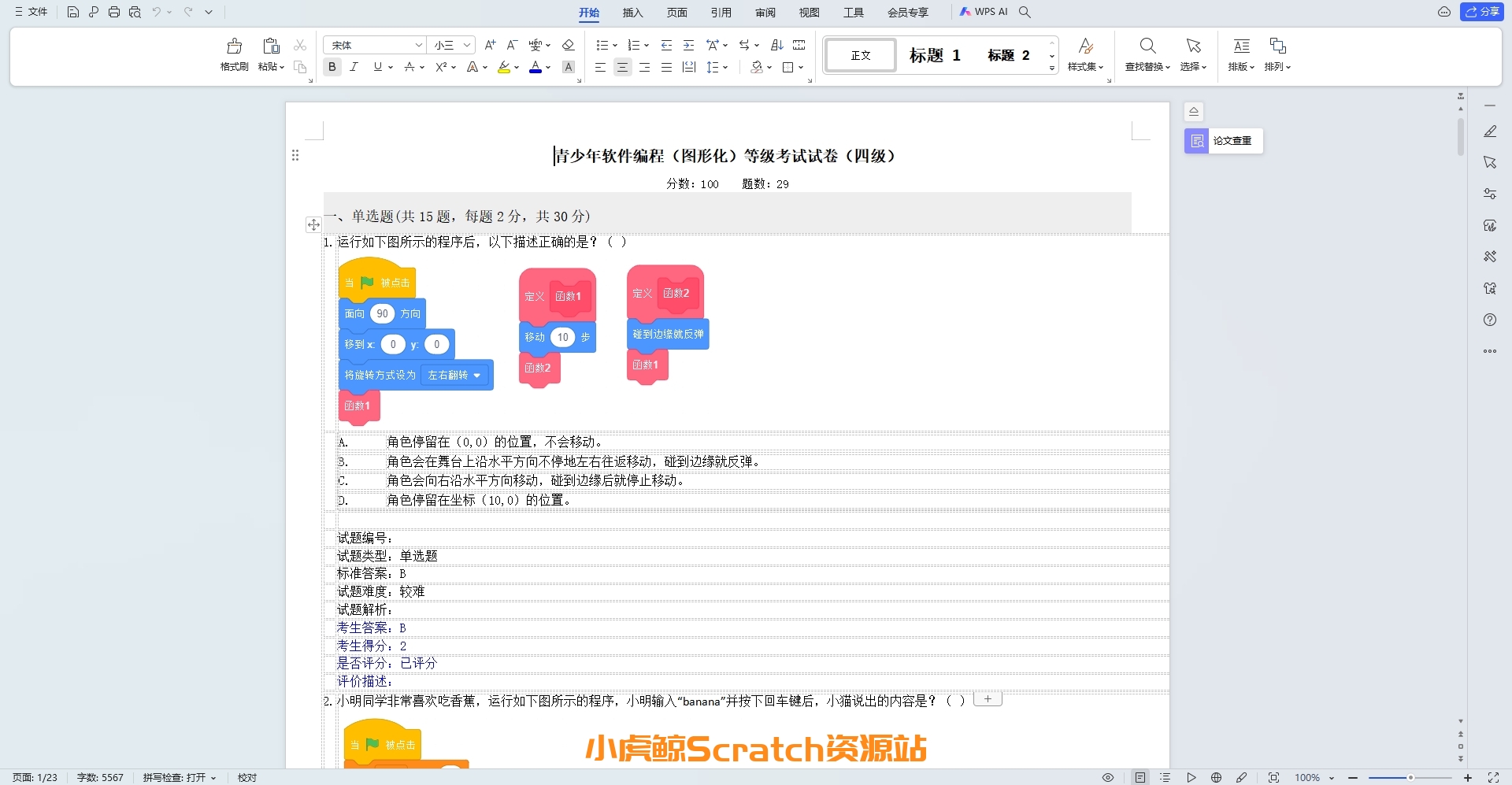 2021年3月青少年软件编程(图形化)等级考试试卷四级(含答案) 版权说明:资源均源于互联网收集整理,不保证资源的可用及完整性,仅供个人学习研究,请勿商用。喜欢记得支持正版,若侵犯第三方权益,请及时联系站长删除!