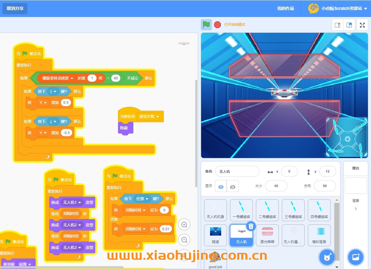 - 变量和数据:使用变量来跟踪无人机的位置、速度和得分等信息。