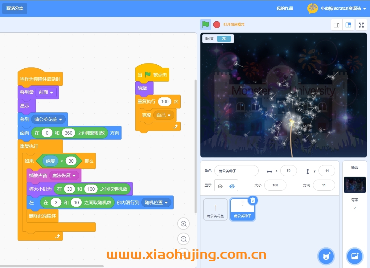 3. 条件判断:理解并应用条件判断语句(如“如果…那么…”),根据声音响度控制蒲公英种子的行为。
