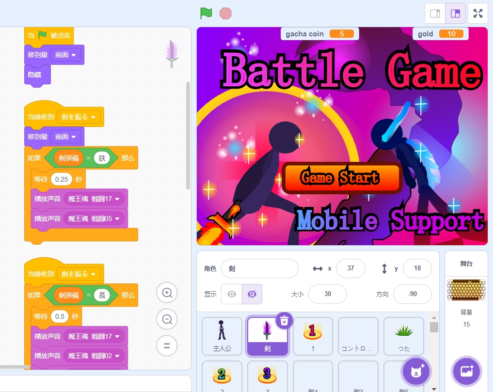 作者onigirikun_2009 这是一款与敌人战斗的游戏! 我做了一个彩票(抽奖)游戏! 这款游戏支持移动设备,所以你可以通过点击来完成所有操作!在战斗中,你也可以使用数字键、箭头键等来操作。要移动角色,只需点击角色即可! 如何保存 – 1: 点击“保存”来复制或记下保存码。 如何设置路线 – 1: 点击旗帜并点击“路线”。 2: 输入保存码。 作品演示 版权说明:资源均源于互联网收集整理,不保证资源的可用及完整性,仅供个人学习研究,请勿商用。喜欢记得支持正版,若侵犯第三方权益,请及时联系站长删除!