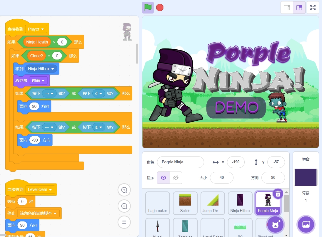 我大约10个月前开始着手这个项目。它包含了我在Scratch上的一些突破:Z-Scratch瓷砖滚动引擎,Z-Scratch状态机,Z-Scratch平台游戏脚本,以及更多!希望你喜欢它!